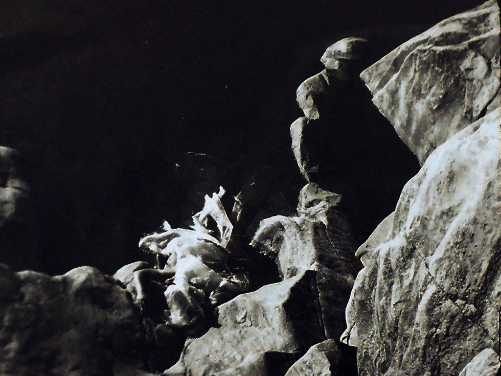 Transfuturistic expanded cinema piece about posthistoric times on this planet and the survival of a queer variant. Filmed on 16mm film and turned into a digital multi-projection work with sound and tactile objects.